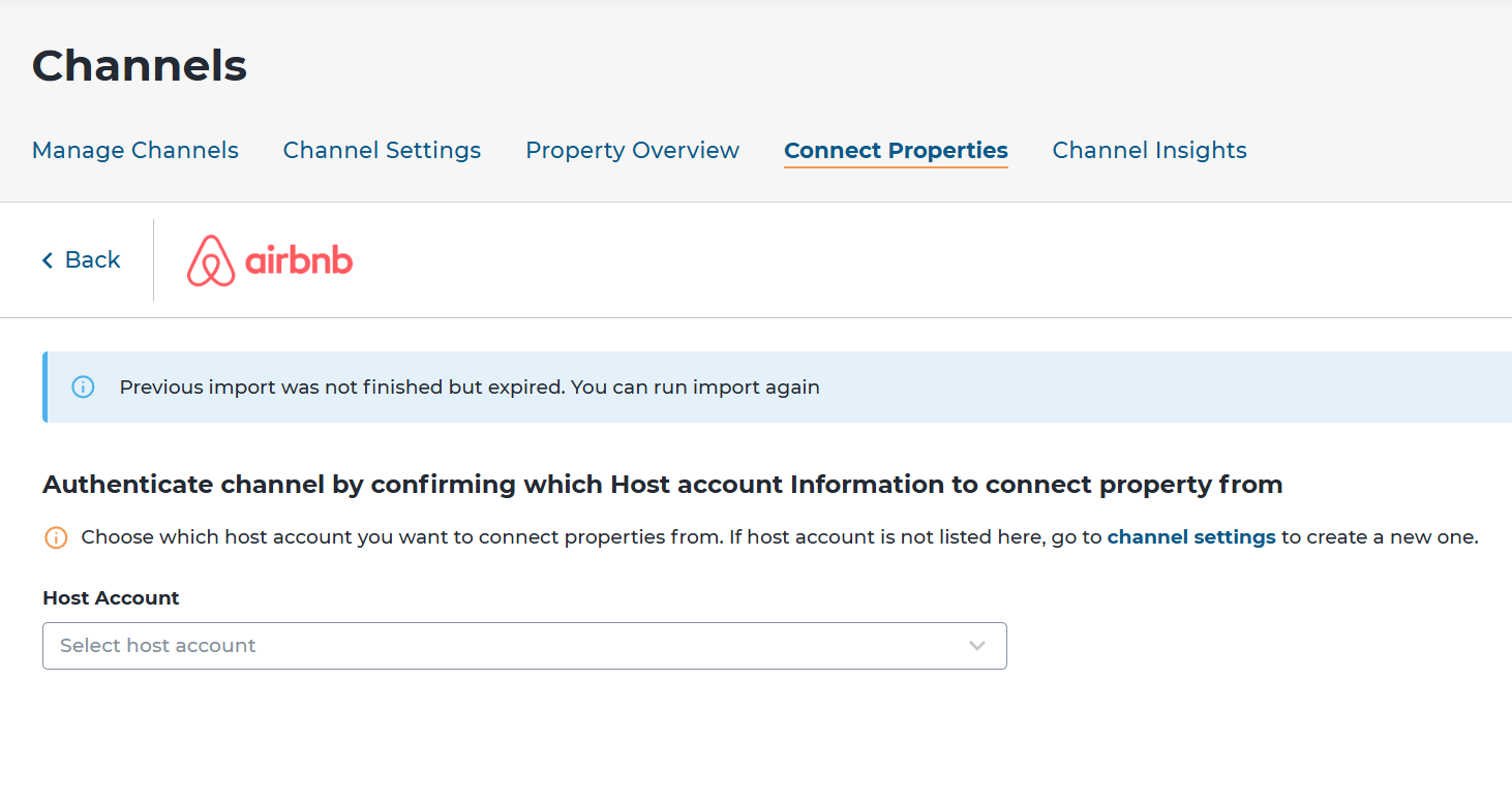 - Choose the host account you want to import properties from